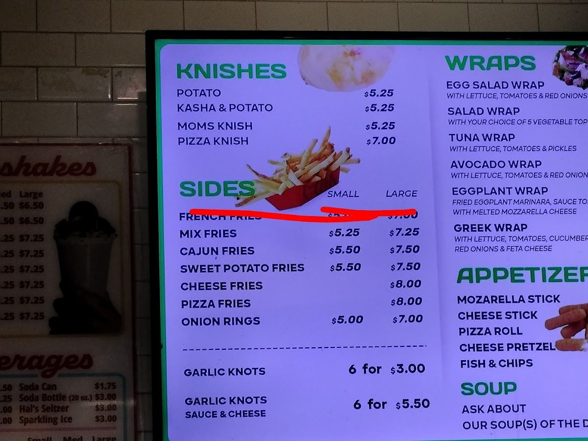 Pasta enthusiasts will enjoy classics like Penne Ala Vodka, Fettuccine Alfredo, and Eggplant Parmesan, while those seeking plant-based options can indulge in the Impossible Burger. The menu also features several types of Knishes, including Potato Knish and Pizza Knish.